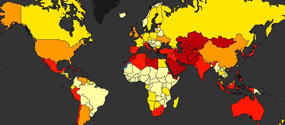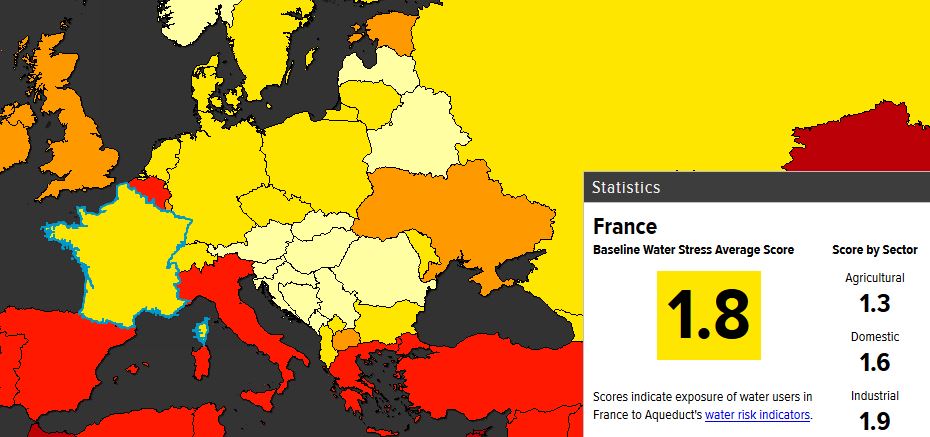 Ci-dessous la même carte sur la zone Europe et la France, qui est dans une situation intermédiaire plutôt correcte.