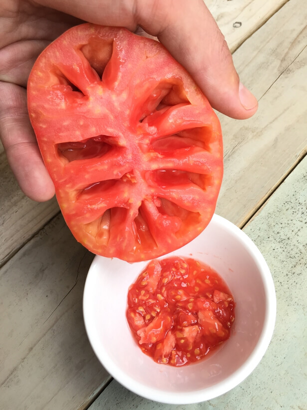 Pour faire vos propres semis de tomates, prenez un fruit bien vigoureux même si c’est parfois difficile d’en sacrifier une ! Choisissez un des premiers fruits à être arrivé à maturité, ils sont toujours plus en forme que les suivants : ce sont donc ceux qui vous donneront les graines les plus résistantes.