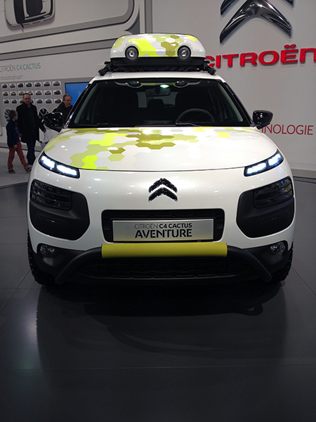 Moins onéreux l’Hybrid C4 Cactus Aventure, présenté en « Première » lors du salon. Pneus à crampons, protections pour les feux, barres en métal avant, arrière, un coffre de toit, des couleurs flash… Tout pour plaire, sauf les 110 Ch sous le capot. Simplement « too much ».