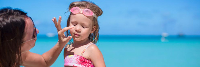Photo de bannière : Attention aux crèmes solaires pour enfants ! © TravnikovStudio – Shutterstock