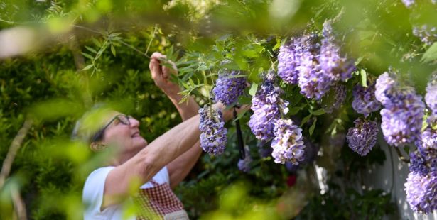 - la glycine, plante grimpante dont la croissance fulgurante peut nécessiter une taille dès le mois de juillet ;