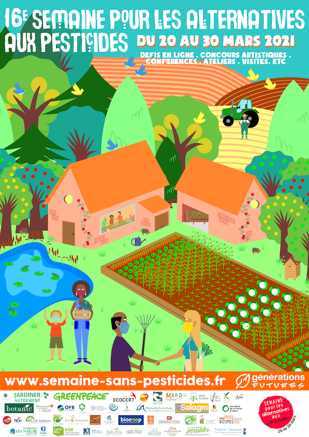 Les 45 organisations nationales partenaires, dont Générations Futures, Greenpeace, les Amis de la Terre, la LPO, la Fondation pour la Nature et l’Homme, France Nature Environnement, Terre & Humanisme, le mouvement inter-régional des Amap (pour n’en citer que quelques unes) ainsi que les acteurs locaux sur les territoires et 8 partenaires étrangers organisent (en ligne et sur le terrain) des conférences, des ateliers, des projections-débats, des balades, des portes-ouvertes etc. pour informer sur les dangers des pesticides et les alternatives existantes.