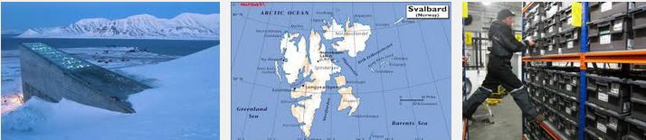 Les échantillons de graines qui y sont conservés sont issus des principales cultures vivrières du monde. Ils sont conservés dans un bunker prisonnier des glaces et d’une terre gelée en permanence, nommée permafrost. La température : -18°C.