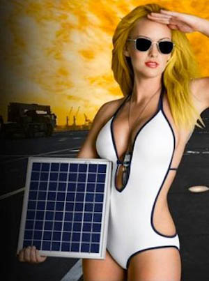 Les photos de la campagne Renewable Girls. Cette marque américaine de panneaux solaires s’est fait un nom en utilisant la stratégie du fameux calendrier Pirelli (des jolies filles pour promouvoir une marque de pneus !) : oui, Megan et ses bananes sexy font vendre !