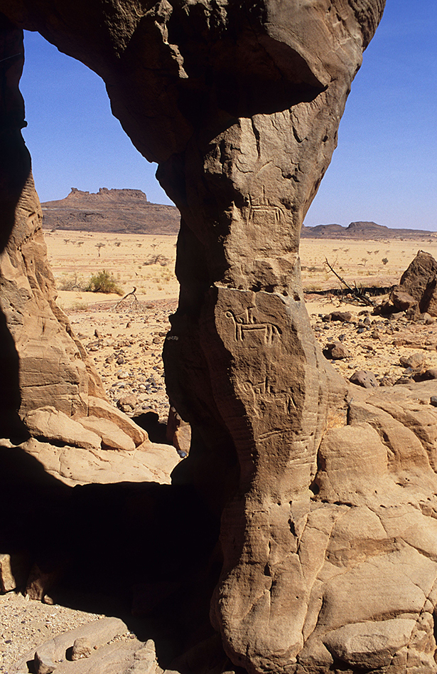 Sur les surfaces planes des parois en gré, dans les grottes, etc., on admire des milliers d’images peintes et gravées : l’une des plus grandes collections d’art rupestre du Sahara.