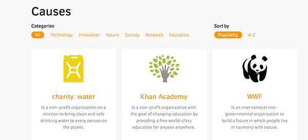 Nouveau venu dans le monde des moteurs de recherche, le site américain reverse 100 % de ses profits à des organisations à but non lucratif (Charity Water, WWF, Médecins sans frontières, Watsi, Unicef, etc.). Vous avez d’ailleurs la possibilité de choisir l’association à laquelle vous souhaitez donner. Le service compte prochainement permettre de suggérer d’autres associations.