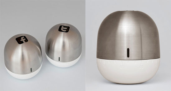 Hugo Eccles, designer londonien s’amuse avec les canaux de communication. Il a ainsi inventé un timer en forme d’œuf qui bloque l’accès aux réseaux sociaux pendant un temps déterminé. L’objet devient un produit du quotidien qui désactive un moyen de communication au profit d’autres comme la parole lors d’un dîner en famille par exemple.