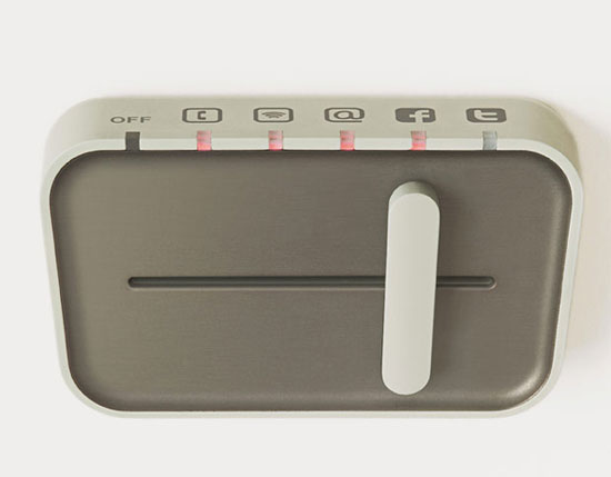 Toujours développé par le même cabinet de design, le « social thermostat » permet de réguler sa consommation de réseaux sociaux. Ainsi, dans le salon, on vit dans une ambiance socialement chaude, c’est-à-dire qu’on s’autorise l’accès aux réseaux sociaux. Par contre dans la chambre, c’est glacial ! La haute technologie n’a pas le droit de cité.