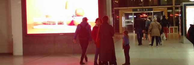 Illustration bannière : Écran publicitaire lumineux en gare de Bruxelles – © Séverine Bascot