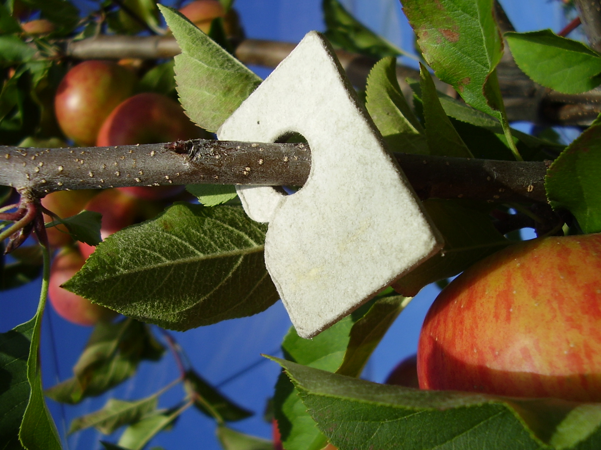 L’apport de ces phéromones dans l’atmosphère de la parcelle désoriente donc nos pauvres papillons mâles : la reconnaissance des femelles ne faisant plus, cela a pour pour effet de diminuer fortement les accouplements ; et donc, de réduire les attaques des vers sur les grappes de raisin.