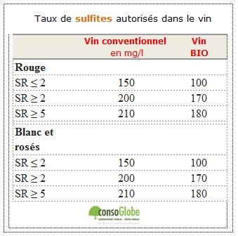 – vin avec SR> 2g/l. Limite réglementaire européenne des vins : 30 mg/l de sulfites totaux.