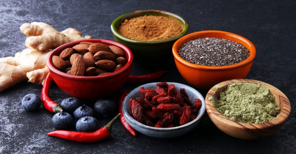 Ensuite, si l’on connaît les attraits du miel, des fruits à coque (amandes, noix, noix de pécan…), ou encore des épinards (riches en fer, en magnésium, et en vitamines A, B, C et K), des épices telles que la cannelle et le curcuma qui peuvent réduire les inflammations. De même, l’ail possède des propriétés antiseptiques, quand les graines de chia sont riches en antioxydants, en acides gras, en fibres, en oméga-3, en minéraux et en protéines.