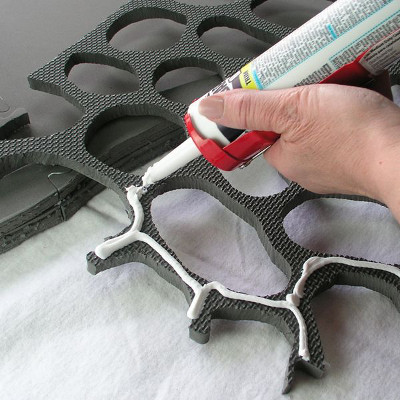 Appliquez du silicone au dos de la plaque de mousse dans laquelle vous venez de découper les formes.