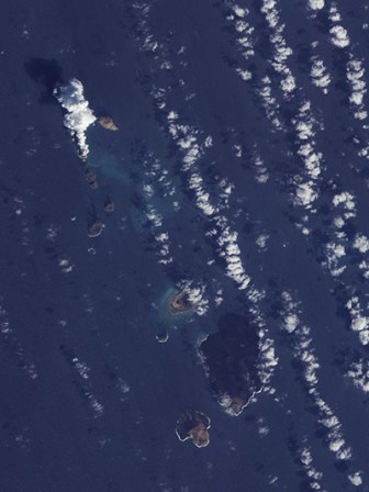 Cette photographie montre une éruption qui a eu lieu dans la Mer Rouge. D’après les témoignages des pêcheurs, des fontaines de lave ont atteint jusqu’à 30 mètres de haut, et une nouvelle île est apparue dans les jours qui ont suivi l’éruption. La fumée épaisse blanche que l’on observe sur le cliché est peut-être composée de cendres volcaniques et de vapeur d’eau.