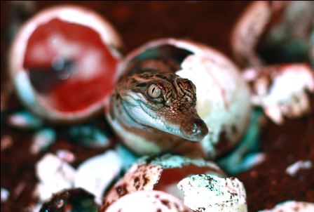 Voici la photo rare d’un petit crocodile du Siam sortant de son oeuf au Laos. Récemment, ce sont vingt oeufs de crocodiles qui ont été découverts près d’un lac, au Laos. Ils devraient normalement retrouver la vie sauvage.