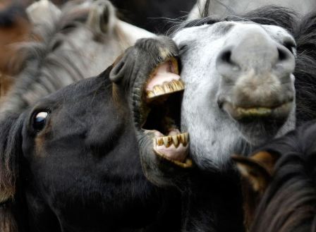 Voici une image forte, celle de chevaux qui se battent pendant un événement traditionnel espagnol. Chaque année en Galice, le premier week-end de juillet, des centaines de chevaux sauvages sont rassemblés, voient leurs poils coupés et sont soignés lors de cette fête traditionnelle.