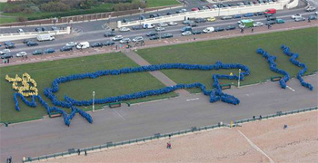 Les fans du groupe recrutés sur le site se sont réunis pour former une « sculpture » humaine visible du ciel. Celle-ci était censée représenter le roi viking Knut II dit le Grand qui a envahi l’Angleterre au début de XIe siècle. Selon la légende, il aurait voulu prouver que même un roi ne pouvait se faire obéir des éléments naturels. Le happening a réuni 350 fans.