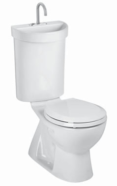 Dès que vous tirez la chasse d’eau, l’eau froide destinée à remplir le réservoir passe obligatoirement par le robinet du lavabo avant d’être évacuée dans le réservoir pour la chasse d’eau suivante.