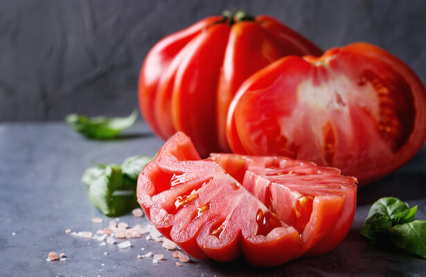 Riche en vitamines C, E, et B9, mais aussi en carotène, en minéraux et en oligo-éléments comme le calcium, le magnésium, le potassium, le zinc et le phosphore, la tomate reminéralise fortement l’organisme.