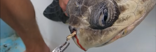 Qui pense encore qu’une tortue ne peut pas souffrir ? Dans la vidéo, on peut percevoir les souffrances de cette tortue marine, entravée par une paille en plastique qui bouche ses narines. Les soigneurs la retirent avec difficulté.
