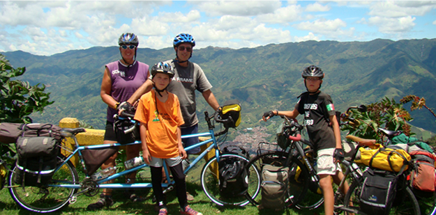 Six roues, huit jambes et beaucoup d’huile de genou ! John, Nancy et leurs enfants Davy et Daryl ont voyagé pendant 3 ans à vélo et ont parcouru 15 pays, parcourant pas moins de 27 900 kilomètres au total !