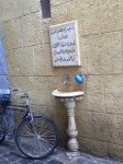 L’eau est filtrée puis amenée jusqu’aux maisons et aux points d’eau potable publics. En France, nous avons les fontaines grâce à ce cher Wallace, ici, ce sont des petits robinets, annoncés par des panneaux de signalisation et agrémentés de gobelets en plastique. Sur la photo, un point d’eau à Alep (Syrie), patrie du fameux savon d’Alep.