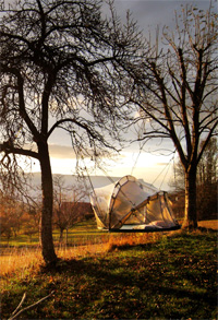 Pour les amoureux du camping, de la campagne et de vues imprenables, le domaine du Pertuis du Rofo à La Roche-Bernard vous propose de passer la nuit dans des tentes panoramiques, accrochées aux arbres ! A mi chemin entre la cabane et le camping donc, cette drôle de tente nommée Visiobulle est un observatoire d’un tout nouveau genre, habillé d’un toit en cristal souple totalement transparent pour une vue à 360° sur les alentours.