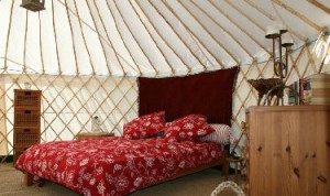 Les deux yourtes comptent une cuisine à l’extérieur ainsi qu’une salle de bain et des toilettes sèches. Le tissu qui est utilisé pour recouvrir la yourte est naturel.