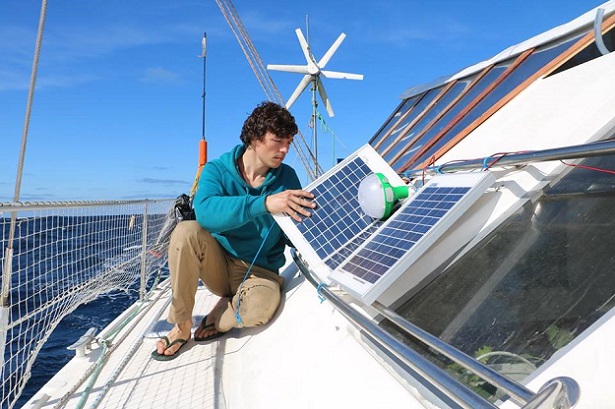 L’éolienne faite maison et les panneaux solaires du Nomade des Mers © Gold of Bengale