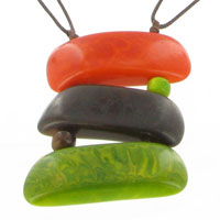 Récoltée dans plusieurs départements de la Colombie, la Tagua est travaillée à Bogota par un artisan partenaire pour y être tranchée ou concassée puis imprégnée par des pigments de coloration non polluants.