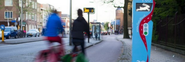 Afin d’aider les cyclistes à optimiser leur vitesse à l’approche des feux, un système de signalisation innovant a été mis en place à Utrecht, aux Pays-Bas.