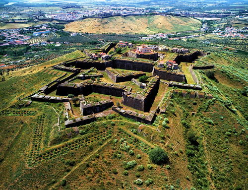 La ville fortifiée d’Elvas a connu une période d’extension particulière importante entre le 17 et 19e siècle. C’est dans cette ville qu’il est possible d’observer le plus grand système défensif de remparts à douves sèches du monde.