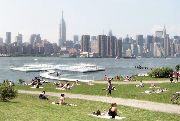A l’origine de ce projet, 3 new-yorkais qui trouvent somme toute illogique de vivre dans une ville entourée par l’eau sans jamais pouvoir se baigner. En effet, se baigner dans l’Hudson River par exemple est fortement déconseillé à cause de la pollution (PCB, bactéries, etc.) C’est ainsi que depuis 2011, ils tentent de convaincre les hautes autorités de la Grosse Pomme de construire des piscines flottantes et filtrantes afin d’améliorer la qualité de l’eau.