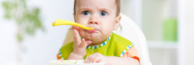 Illustration bannière : Bébé qui mange en faisant la grimace – © Oksana Kuzmina