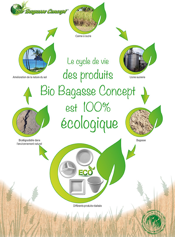 Bio bagasse concept, vaisselle jetable biodégradable made in Guadeloupe