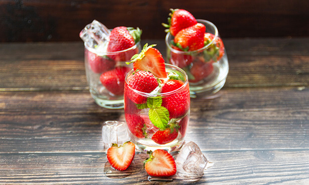 Le mojito à la fraise est une variante classique du célèbre cocktail qui comporte généralement du rhum cubain, du sirop de sucre de canne, du citron vert et de la menthe. On ajoute des morceaux de fraise pour une variante très fruitée.