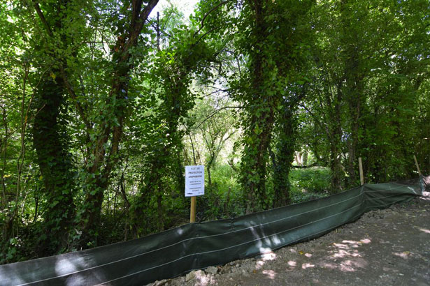 La gestion des eaux de pluie s’appuie sur un réseau de noues (sorte de fossé végétalisé peu profond et large) à ciel ouvert, plantées d’espèces filtrantes, plutôt que par des collecteurs enterrés, et une partie des boisements spontanés existants ont été conservés.