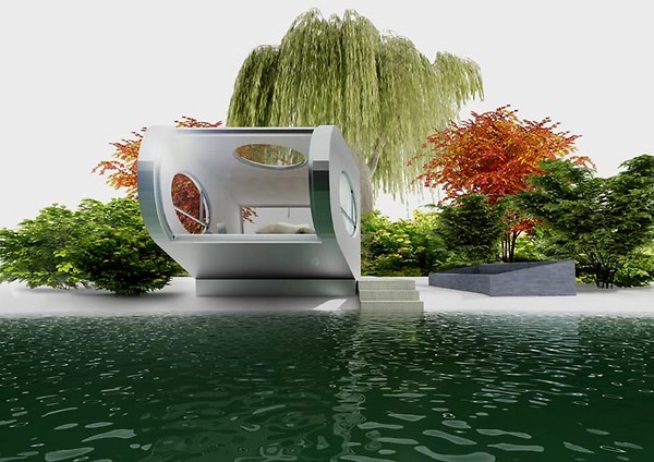 Bois, eau et terre – ce projet de cabane a été conçu par Cristina Caldieri et Andrea Cigolini. Water Lily est équipée d’une petite cuisine et un grand soin a été apporté à sa décoration comme on le voit à la page suivante.