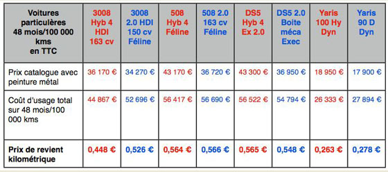 Le prix de revient des voitures hybrides