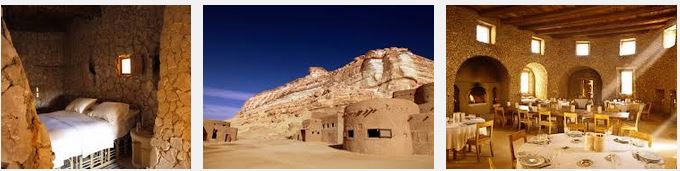 Situé au large du Caire, cet hôtel fait partie des plus beaux éco-hôtels du monde. Il est composé de 40 chambres qui s’apparentent à des châteaux de sable. Il se fond à merveille avec le paysage désertique de la région, à côté du lac Siwa,