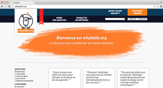 whyboOk se propose donc de relayer de grandes questions citoyennes sur des thématiques comme la société, le bien-être animal, l’environnement, la santé, les droits humains, les biens de consommation ou encore l’alimentation. En s’unissant, les utilisateurs du sites – les moOtons – décident en votant des questions qui seront envoyées.