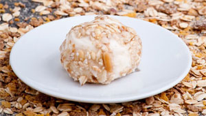 Cette nouvelle peau nutritionnelle est constituée d’un ensemble d’ions, comme le calcium. A cela, on peut ajouter d’autres petits éléments qui donneront de la saveur à l’emballage et qu’on adapte au produit fini : du chocolat, des fruits secs, des noisettes, des fines herbes, etc.