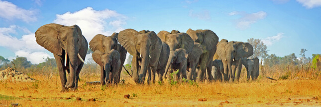Illustration bannière : Un groupe d’éléphants dans une réserve du Zimbabwe © paula french