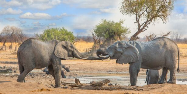 Deux éléphants au parc national de Hwange au Zimbabwe. ©paula french